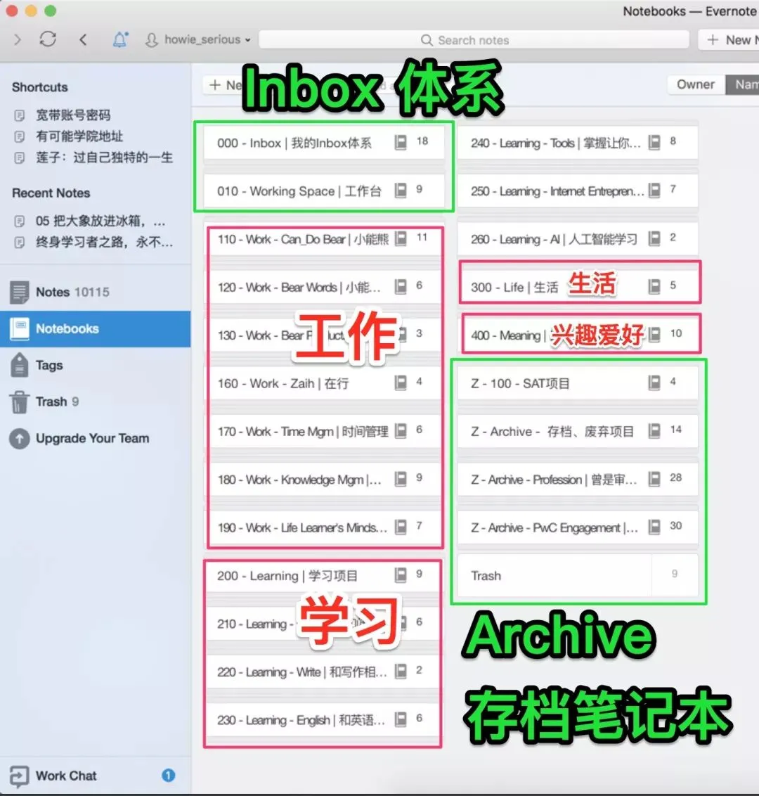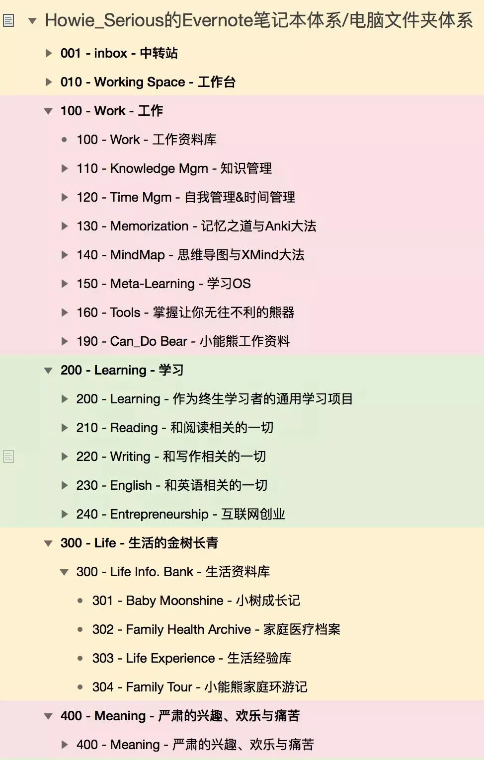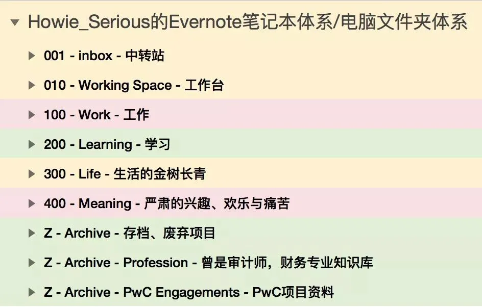 这么处理完之后,一次设置,终生受用。这套规则的使用范围广泛,本来是我在Evernote知识管理系统中的笔记本分类方法,但是: