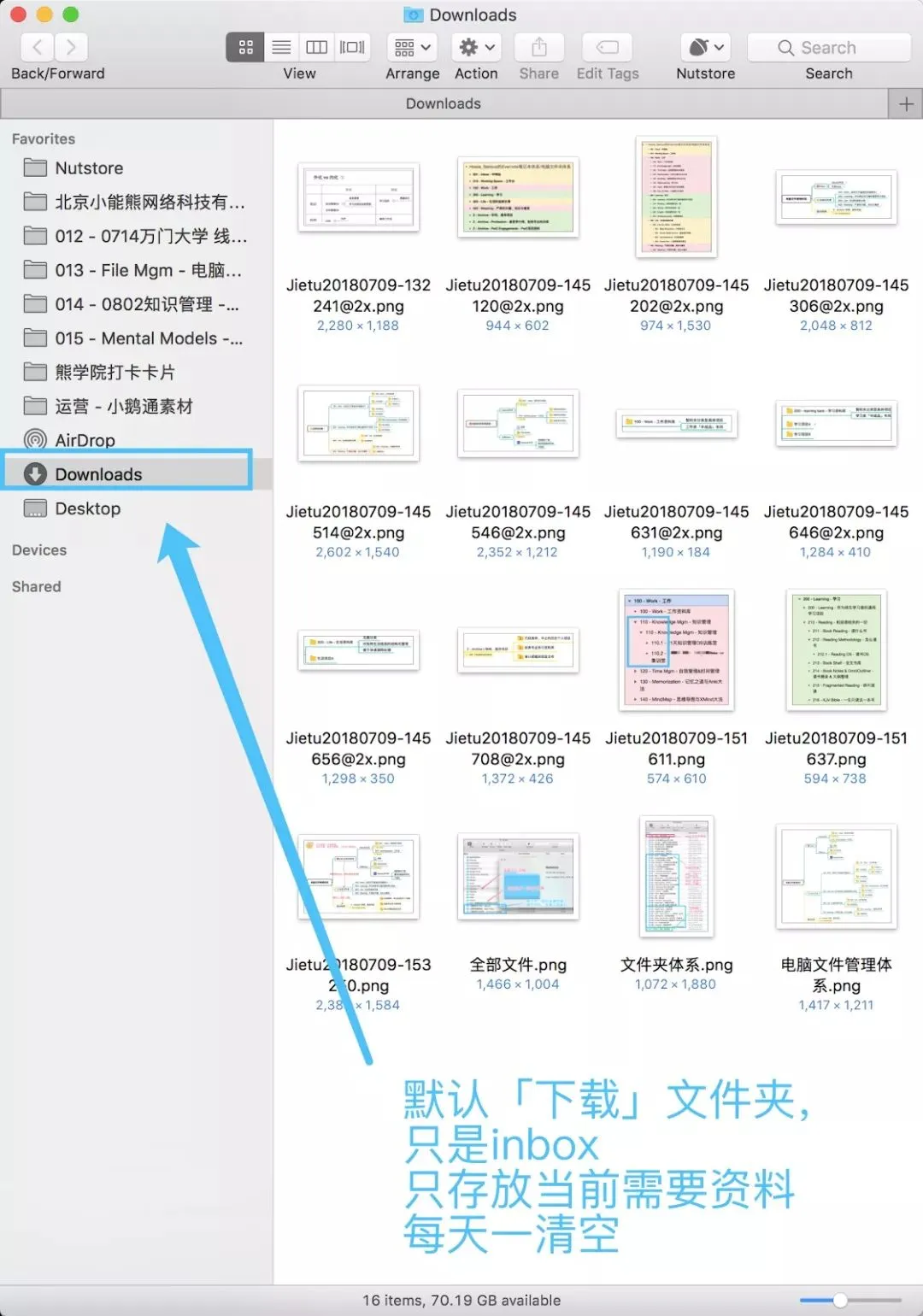 以我目前为例。我的downloads文件夹,只有当前写文档时需要用的截图。因为: