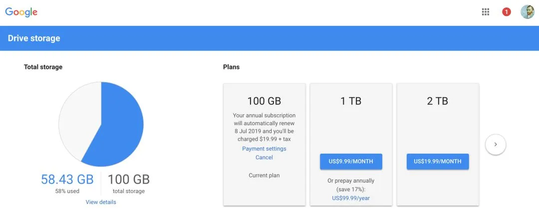 后来,我切换到Google Drive。优势非常明显:和Google Docs、Google Photos无缝衔接。但缺陷仍然存在: