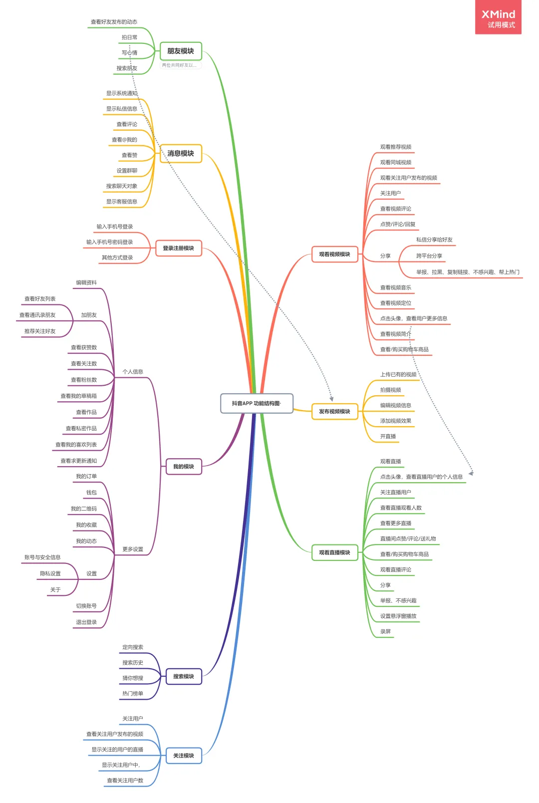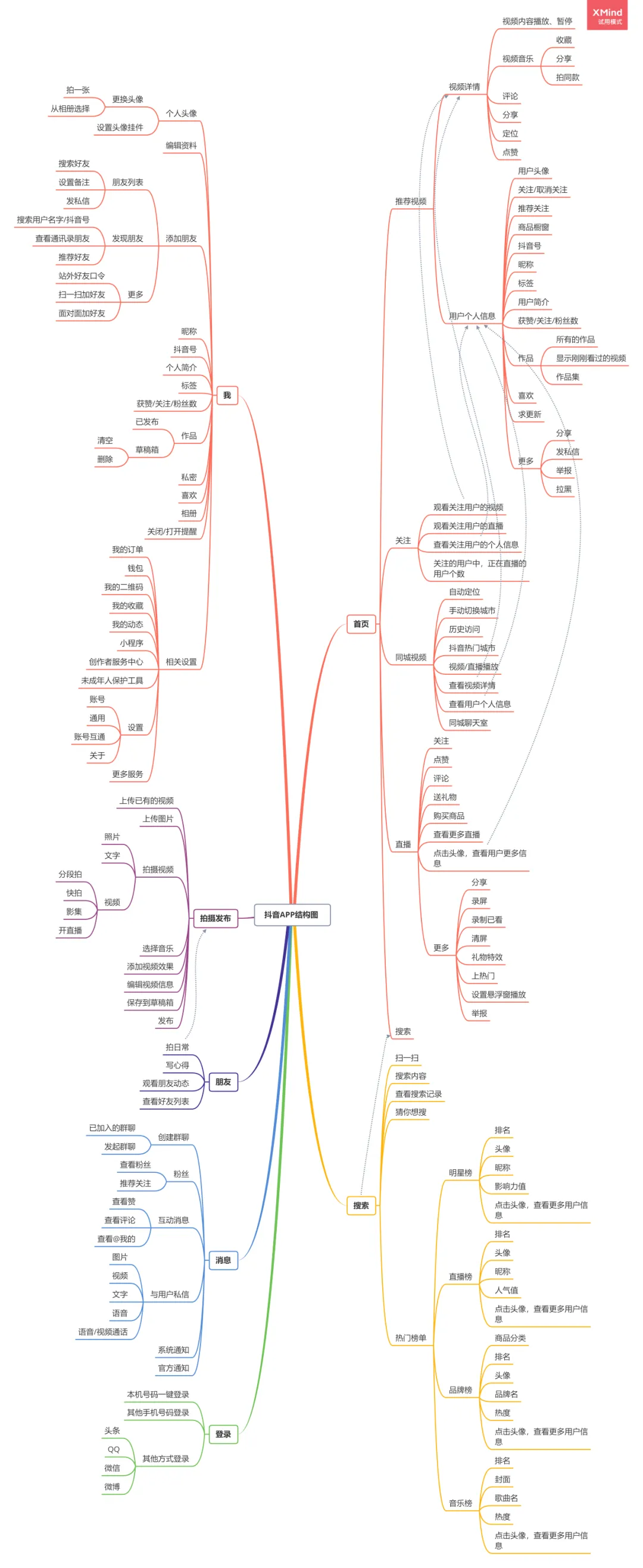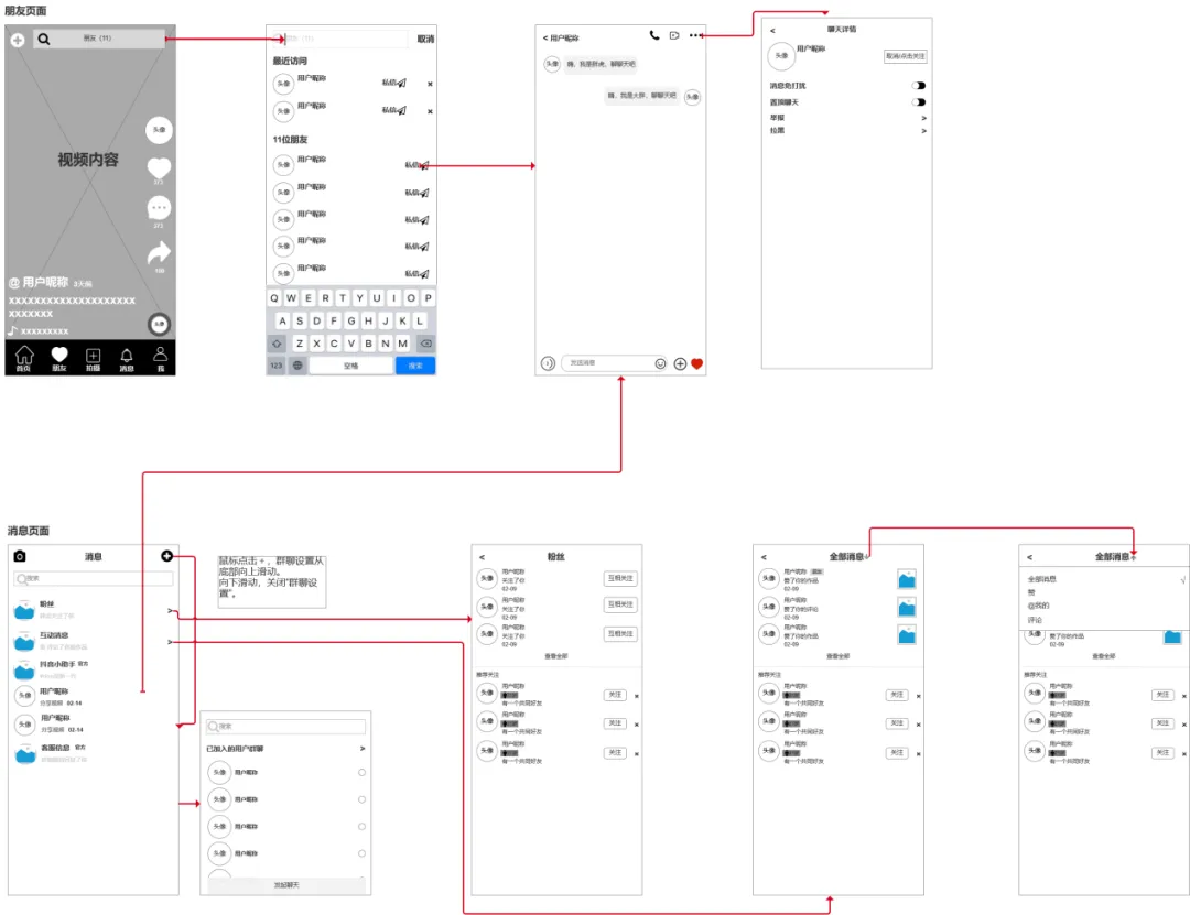 抖音APP作为一个短视频分享平台,它的核心功能是发布视频和浏览视频;由于它的功能点比较多,交互界面比较繁琐,所以我只简单梳理了抖音主要功能的业务流程,页面逻辑以及页面交互说明。