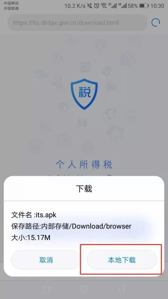 3.在浏览器中打开后,点击“下载个人所得税”,再点击“本地下载”。