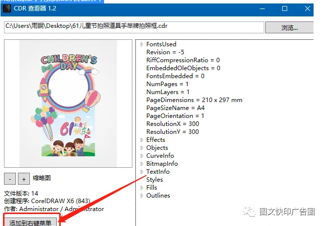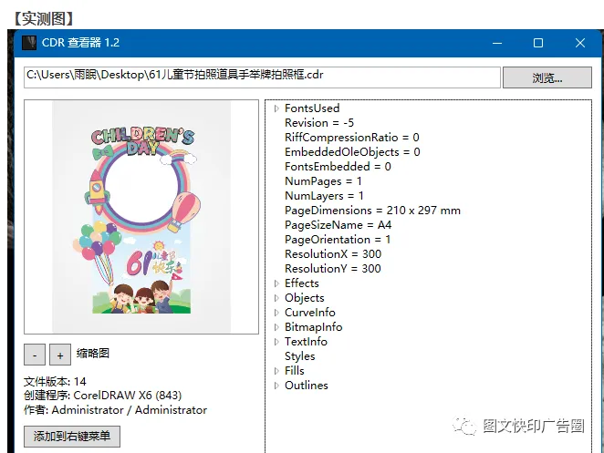 直接查看CorelDraw文件版本 缩略图。【仅支持查看略缩图和文稿信息】