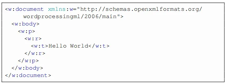 下面中给出了最小的“ Hello World” document.xml。