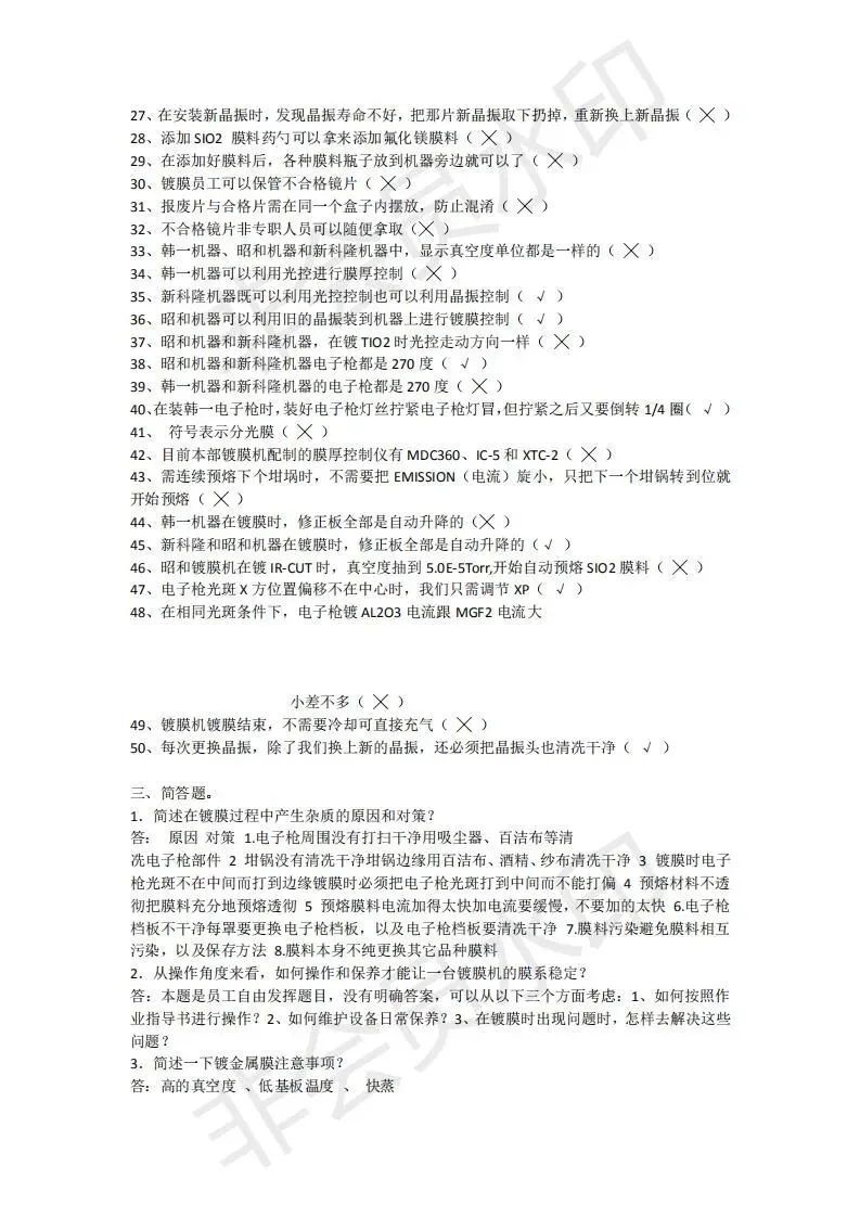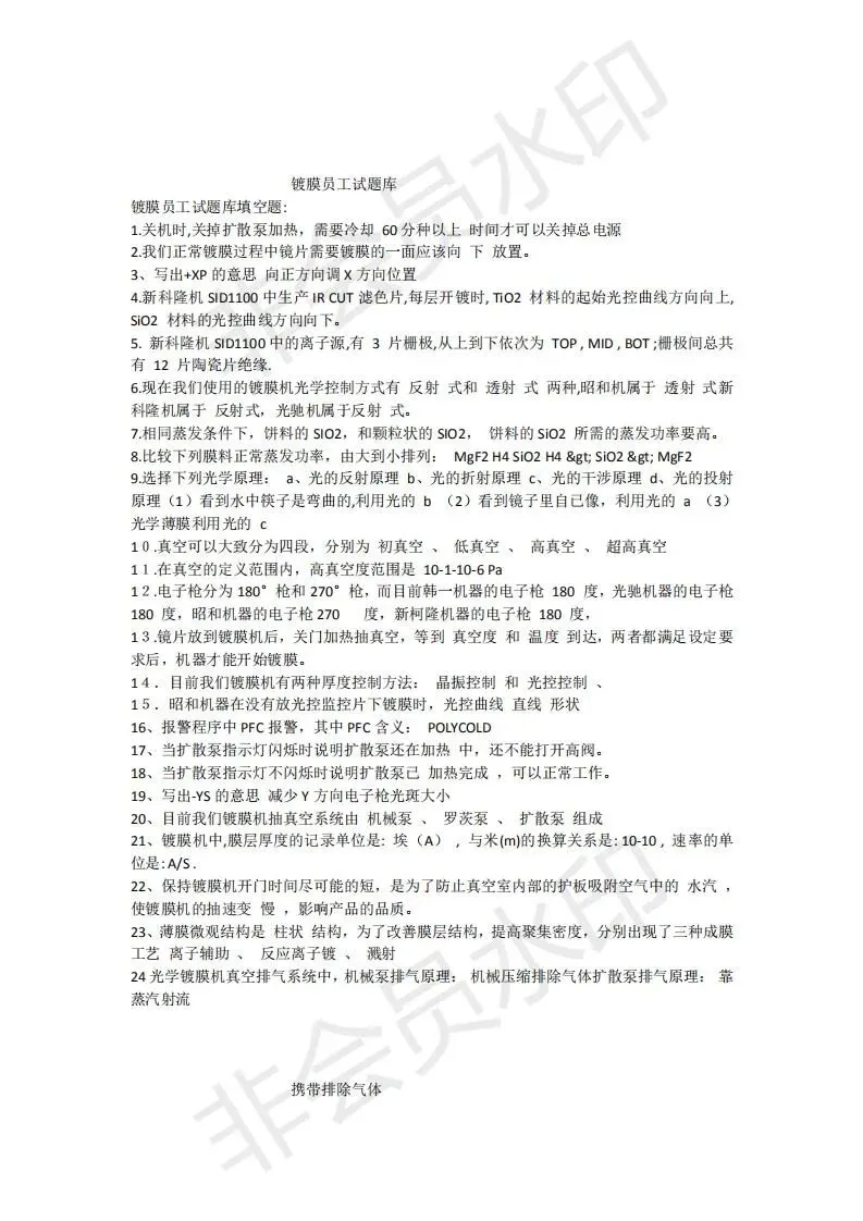 镀膜员工试题 提供原文件下载 可编辑 本文可以下载原文件。 可继续编辑 下载方法,见右下角. 本文可以下载原文件。 可继续编辑 下载方法,见右下角. 更多学习资料,请关注公众号。 点击”阅读原文”,查看更多精彩内容。 点一下「在看」 评论:我正在看 转发并发送截图到公众号后台 并回复文件编号:20200411 可以下载原文电子档 👇