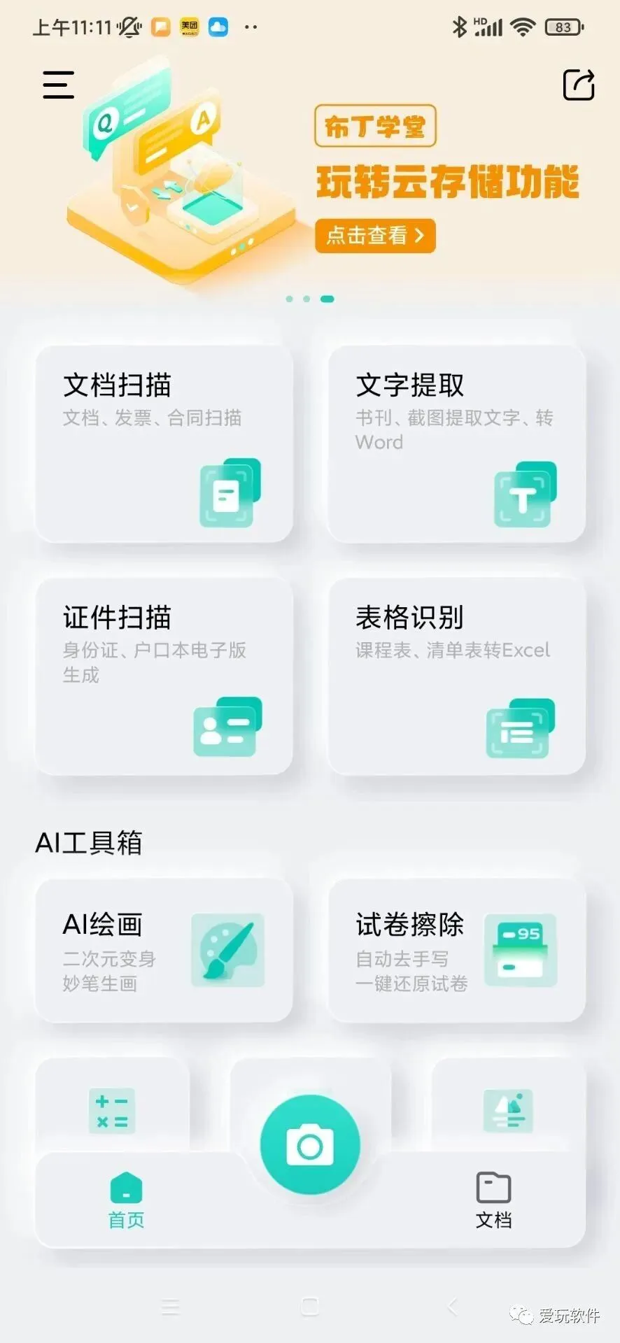 功能很多,文档扫描、文字提取、证件扫描、表格识别,增加了照片修复功能,它主要是可以将模糊照片修复、黑白照片一键上色,但具体的使用感受需要自己体验。
