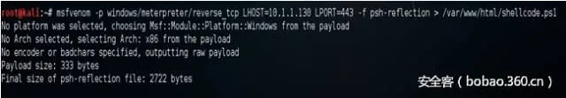 生成powershell反射攻击载荷(reflection payload)并启动监听程序