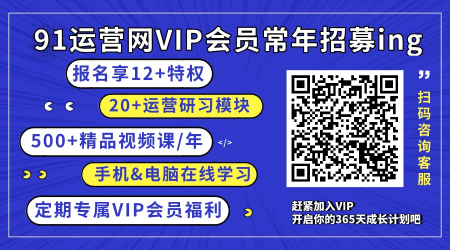 学习更多运营课程,欢迎加入已有10000+会员《91运营网VIP》。点击阅读原文了解详情,开启365天运营蜕变之旅!