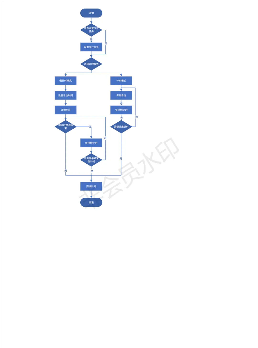 点击后开始专注计时,“开始”选项变为“暂停”选项,点击“暂停”选项,可选择“继续/结束”计时。