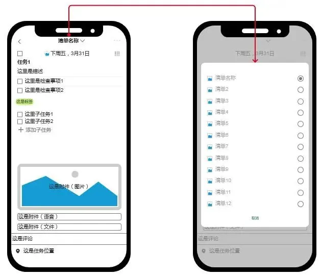 • “添加子任务”与“新建任务”方法一致(注:子任务无法通过语音识别输入),具体在“任务列表页”的新建按钮中说明,此处不在赘述。