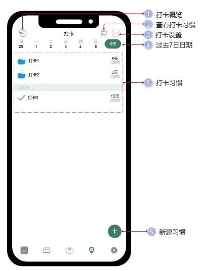 • 向右拖拽已打卡习惯,取消当日打卡。