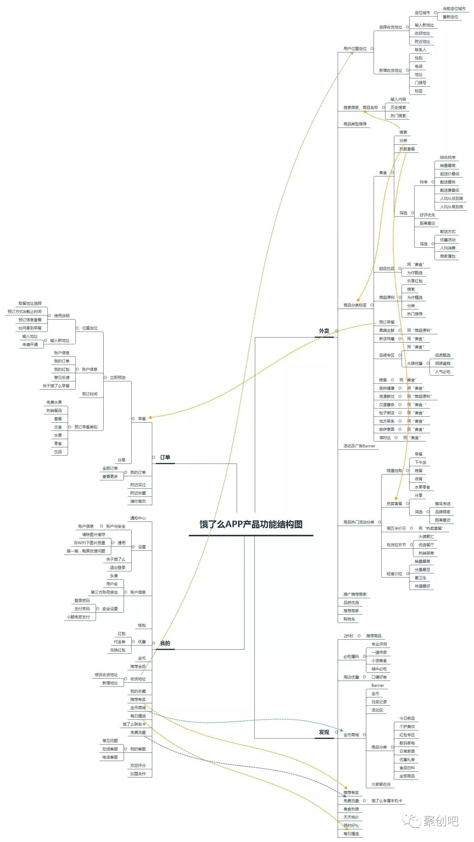 “饿了么”App的信息架构异常复杂,这对于平时基本只会用到点餐订外卖的我来说是没有想到的。一个主要针对在线订餐服务的产品承载了如此多的内容,并产生了如此多的流量入口,可留存率容易降低且流量加工能力需要很强。