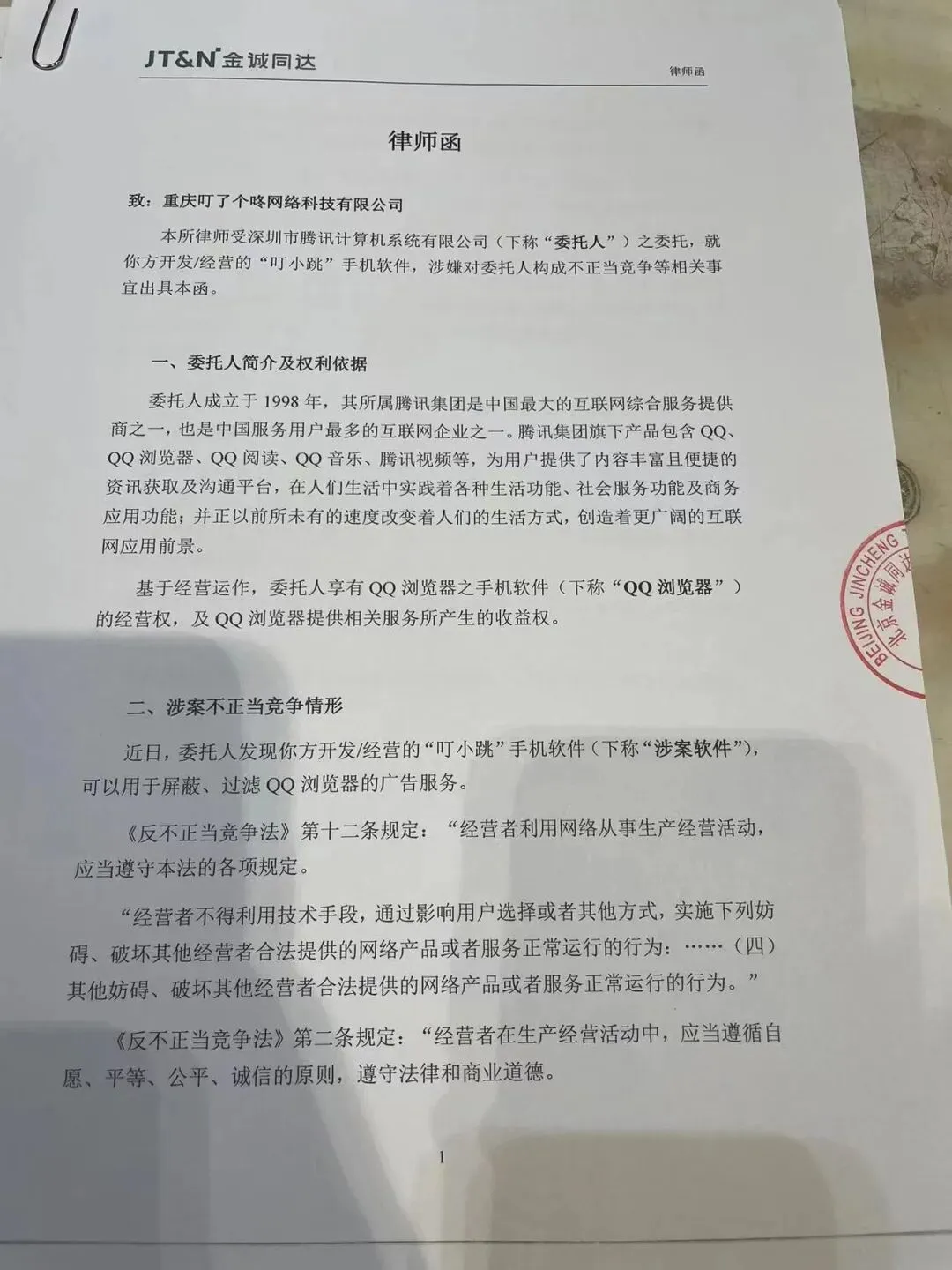这几天,不止是李跳跳,同类 App“大圣净化”“一指禅”“叮小跳”,也收到了相同内容的律师函,而委托人均为腾讯。
