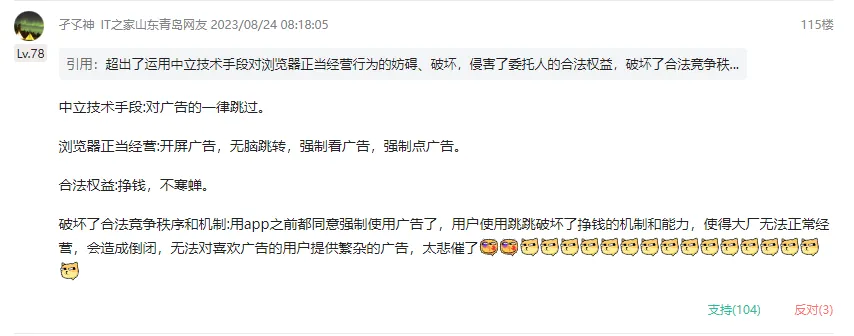 “明明是因为有部分厂商在开屏广告上存在不合理或不规范的行为,才会有李跳跳这类反制手段。”