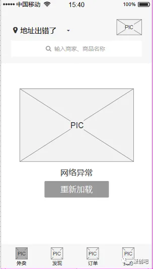 思考:此处饿了么App并没有使用其他弹窗来引导用户如何检查或设置网络及网络路径,仅有的网络异常提示和重新加载按钮个人感觉从体验上不能有效的帮助用户解决网络问题。