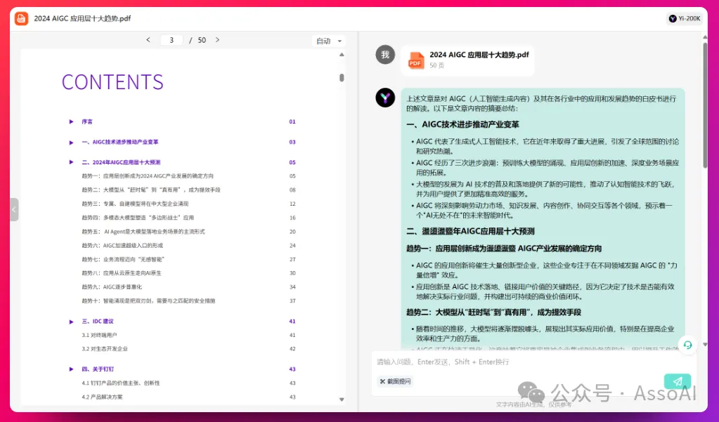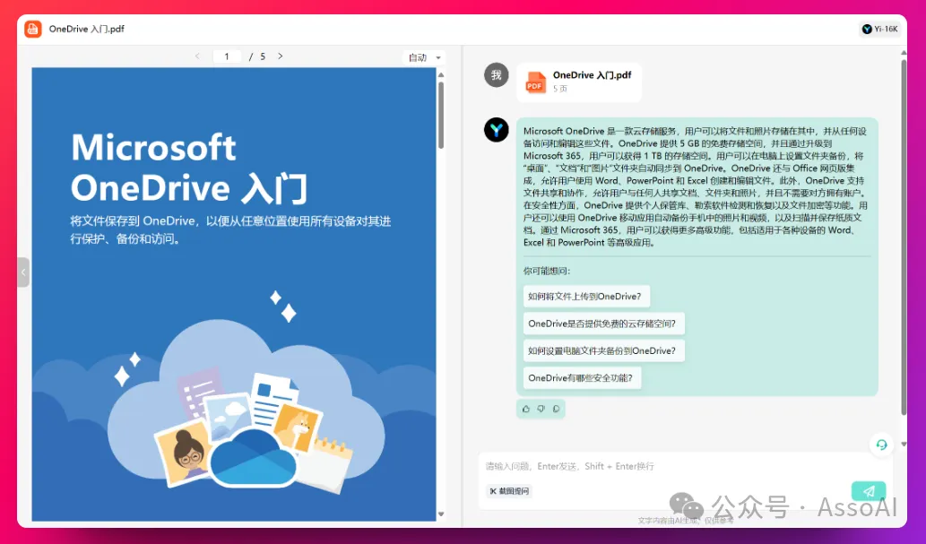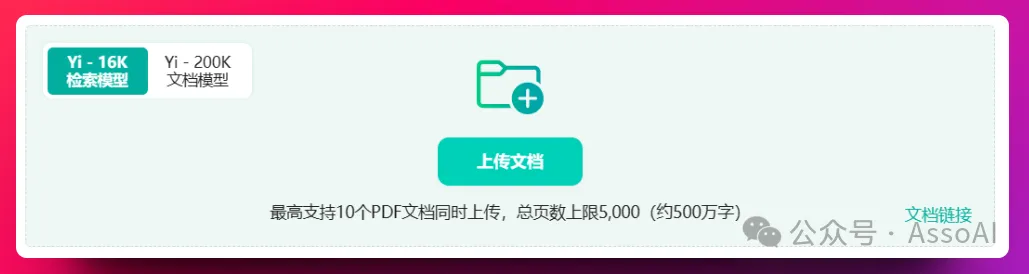 对于Yi-16K(检索模型):最高支持10个PDF文档同时上传,总页数上限5,000(约500万字);而Yi-100K(文档模型):仅支持单个文档问答,不过效果很不错。