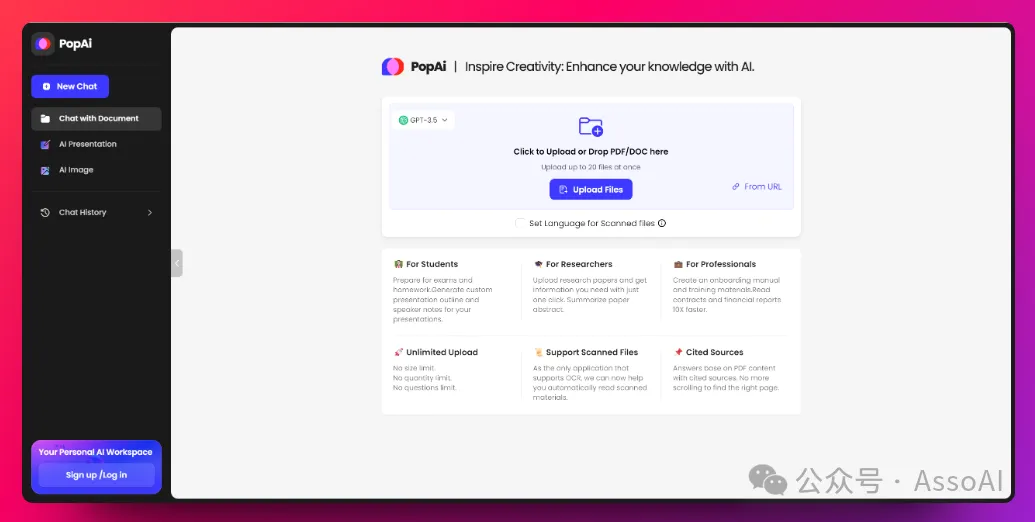 它可以进行一般的 GPT 对话,并根据你的pdf生成内容,无论是文章、pdf幻灯片还是扫描的pdf(可以进行OCR)。