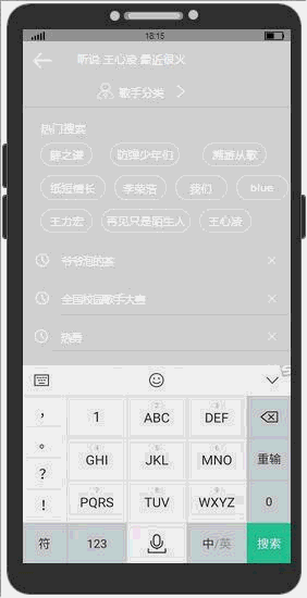 功能描述:搜索输入歌名、专辑、人名,关键词;
