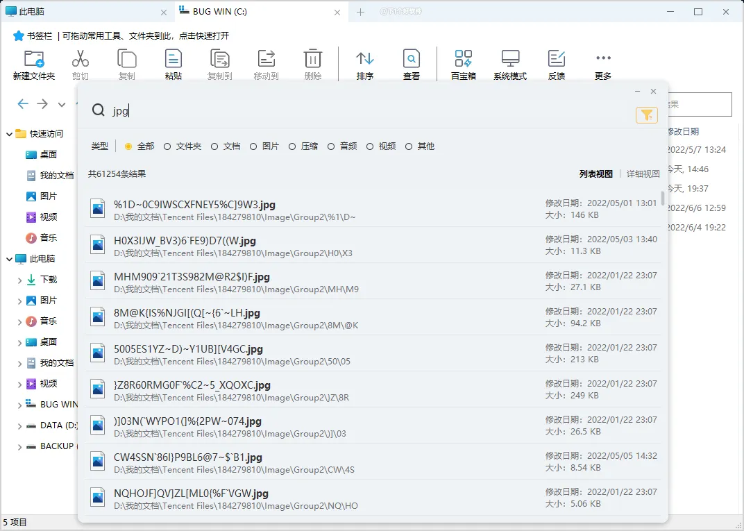 极速搜索,可以筛选类型