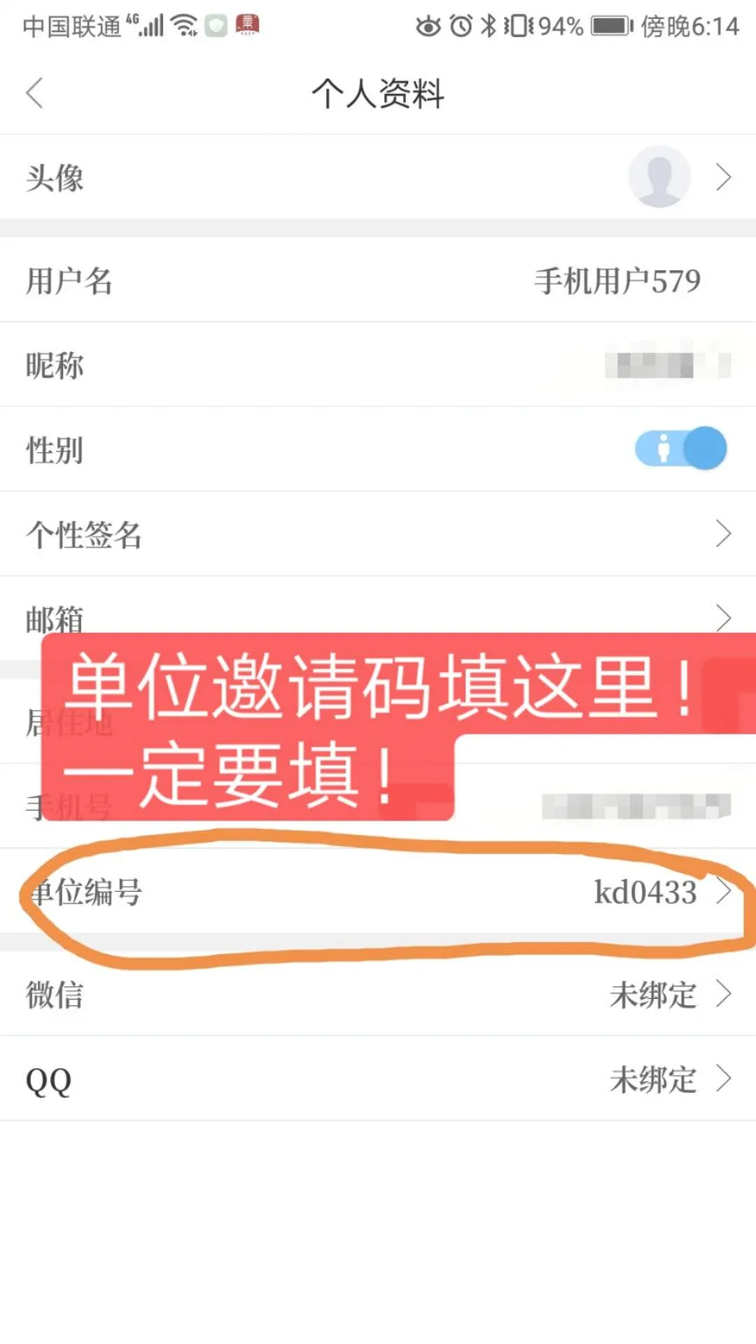 可在APP个人资料中的单位编号一栏补填邀请码。