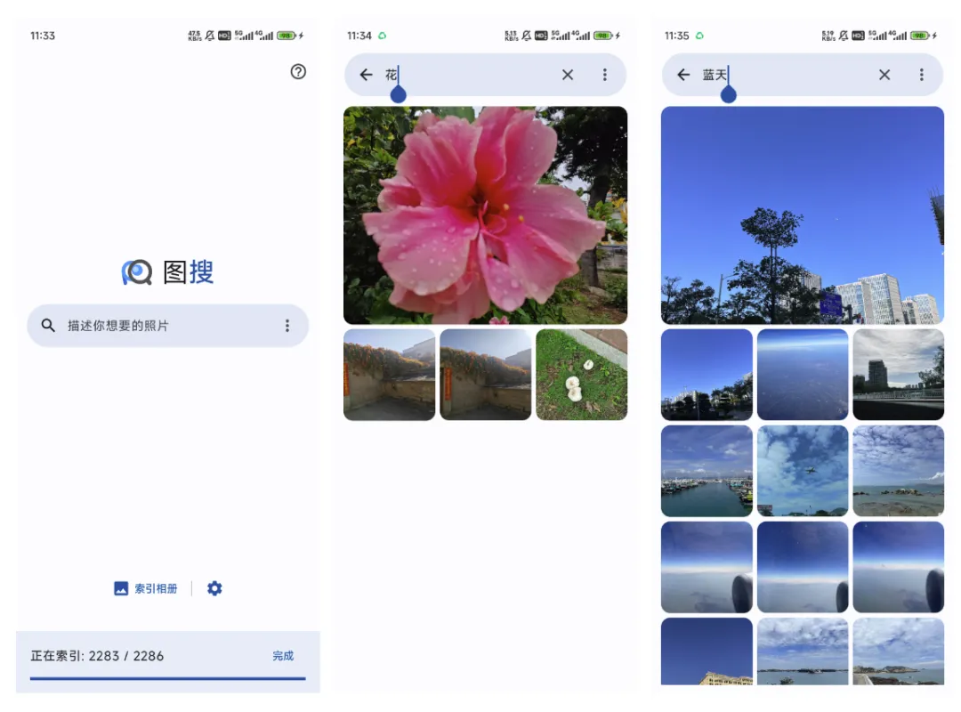 图搜使用先进的自然语言处理技术,让你能够通过简单的描述来搜索相册中的图片,如“草丛中的猫”或“公园里的狗”。