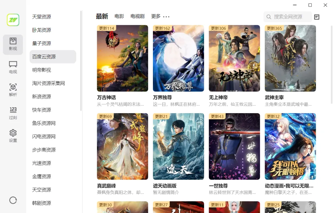 软件除了可以观看央视频道外,还可以检索相关频道的资源,是通过开源接口对接的,比如最新的电影和电视剧。