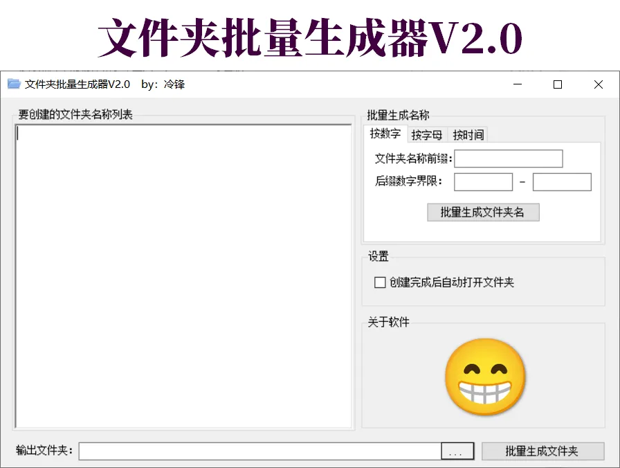 这款软件很直白,就是一款批量生成文件夹的软件,可以按照数字,按字母,按时间进行进行添加前后缀,操作也会非常便捷。