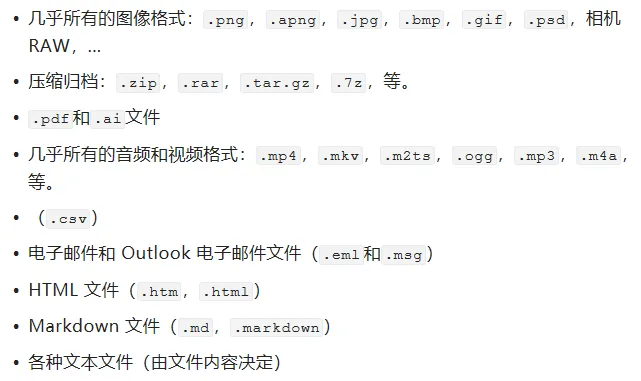 下面就是这款工具支持打开文件格式的一览表,大家可以看一下,基本包含了所有文件格式。(office文件也包含在内)