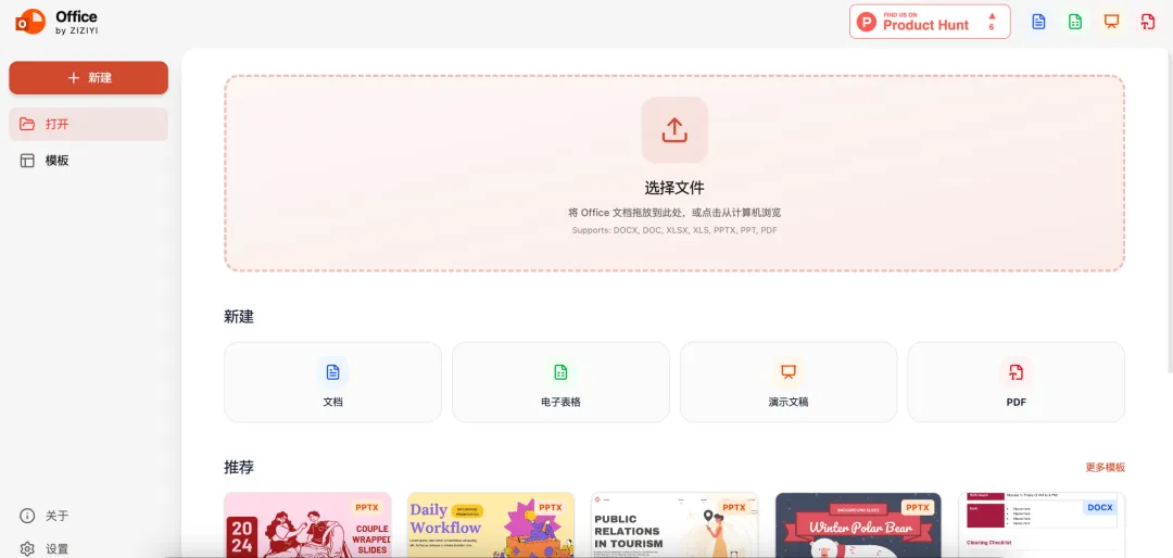 多格式支持:可以打开和编辑 .docx、.xlsx和.pptx文件。 -