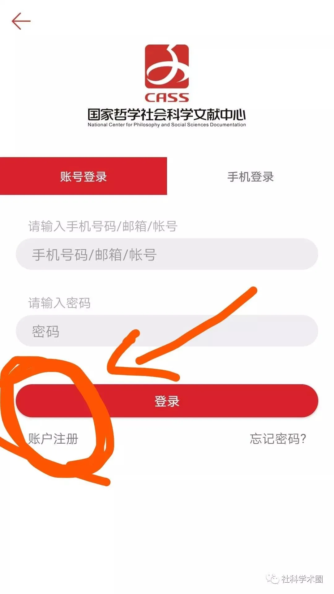 1.在应用市场检索软件名“国家哲学社会科学文献中心”下载安装软件。为了便利给读者,小圈在下方提供了该软件的下载二维码。