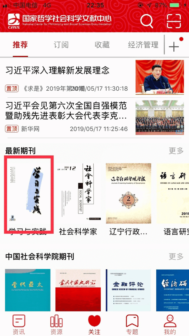 3.注册后登陆,在下方菜单栏“资源”里,就可以检索自己需要的期刊或者文章,并免费下载阅读了。