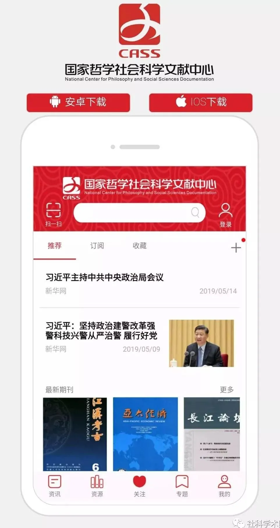 1.在应用市场检索软件名“国家哲学社会科学文献中心”下载安装软件。为了便利给读者,小圈在下方提供了该软件的下载二维码。