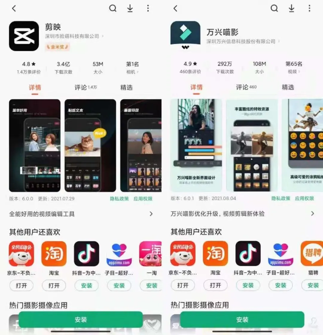 目前从手机端应用市场下载量来看,剪映占据绝对的领先地位,如果喵影工厂需要进一步缩小差距,甚至是不至于差距被进一步拉大,喵影工厂去除水印限制是最好的解决办法。