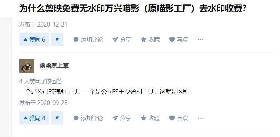 知乎上有这样一个问题,问的是为什么剪映免费无水印而万兴喵影去水印要收费?