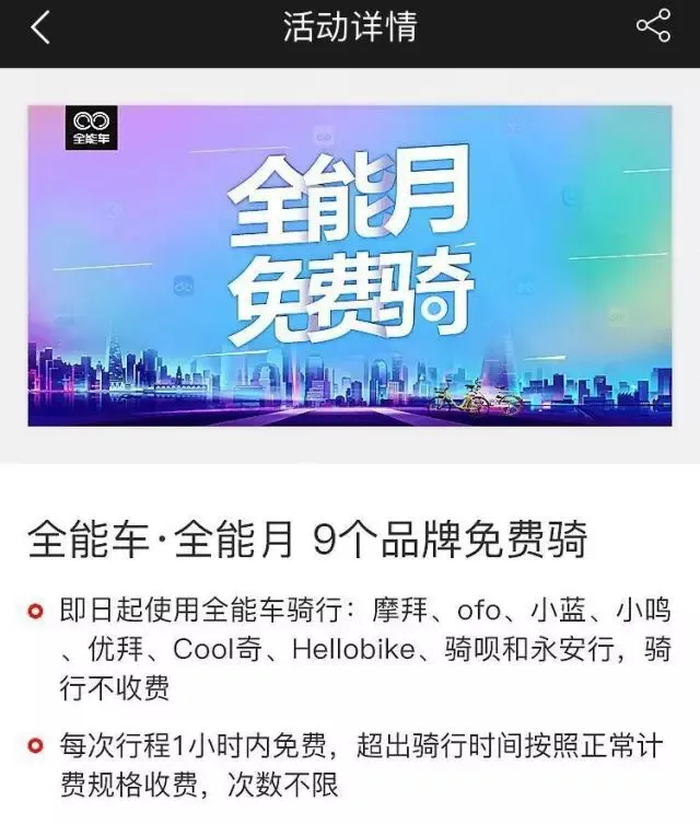 本站文章均为手工撰写未经允许谢绝转载:夜雨聆风 » 下载一个APP,就能免费骑中山街头4款共享单车?能!但是……