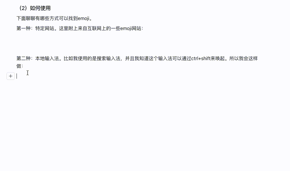 比如我使用的是搜狗输入法,并且我知道这个输入法可以通过ctrl+shift+e来唤起。所以我会这样做: