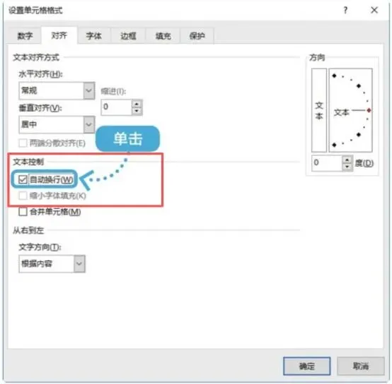 02在【对齐】选项卡下单击【自动换行】复选框,单击【确定】按钮。
