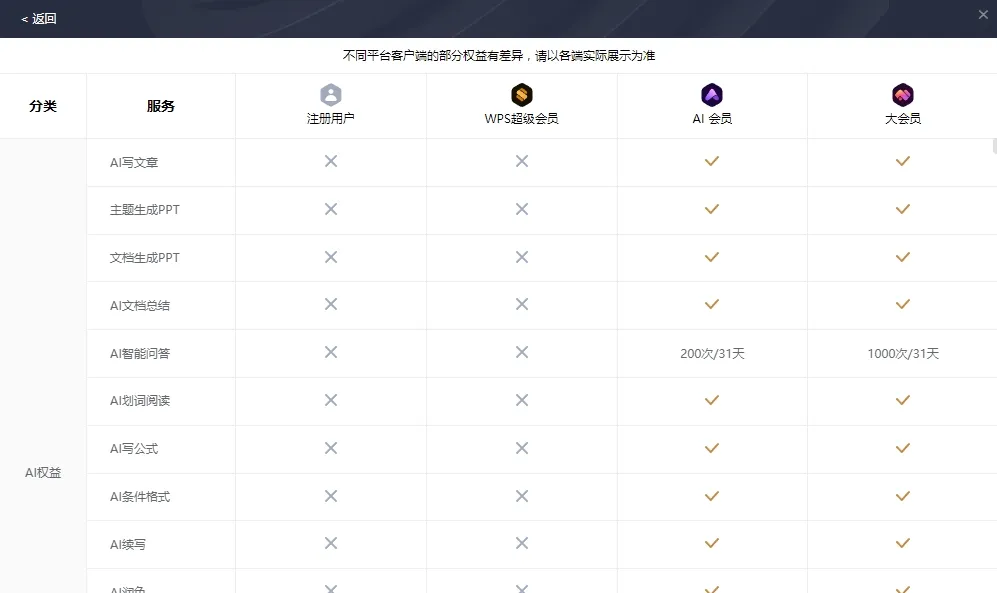 再比如,不少用户反映这个办公软件平台会员结构复杂,出现过的有会员、超级会员、稻壳会员、超级会员Pro、AI会员、大会员等。此外,还在超级会员之下设置了若干个“独立套餐”,如编辑PDF的“PDF套餐”、云文档多设备同步的“云盘套餐”。从企业经营角度看,这种设计体现了精准收费,利于企业营收,但对于用户而言,有被冒犯之嫌,甚至觉得被“套路”了,体验感显然不佳。