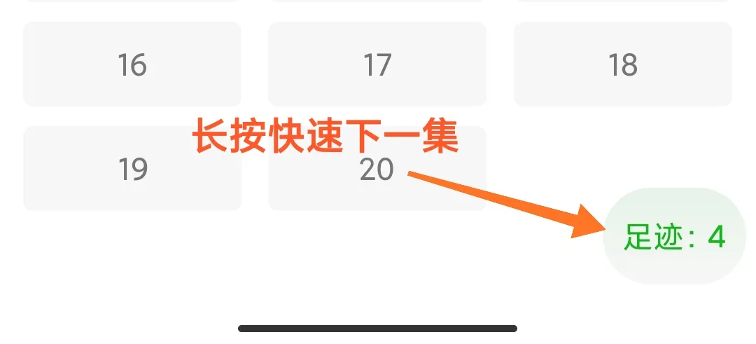 长按足迹按钮快速播放下一集