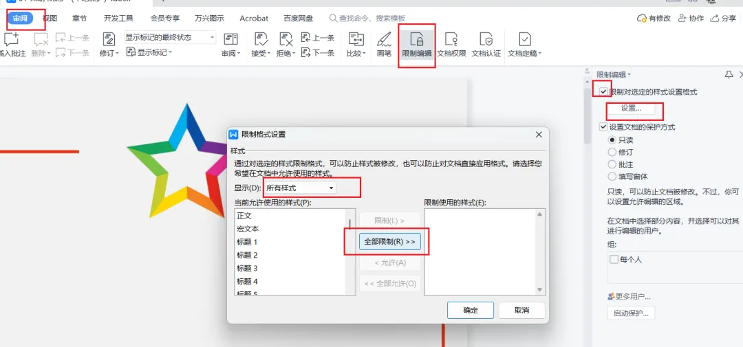 限制编辑可以有效保护文档格式,设置文档权限则可以限制文档的打开和编辑,安全性更高。