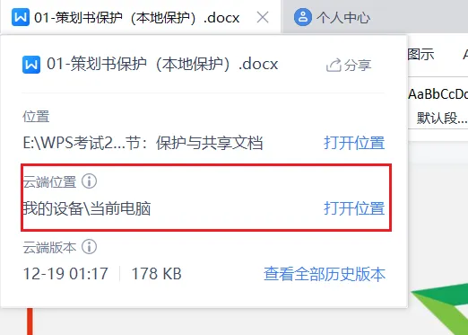 鼠标放在标题上方可以查看云文档的位置。也可以单击首页,点击我的云文档进行查看。