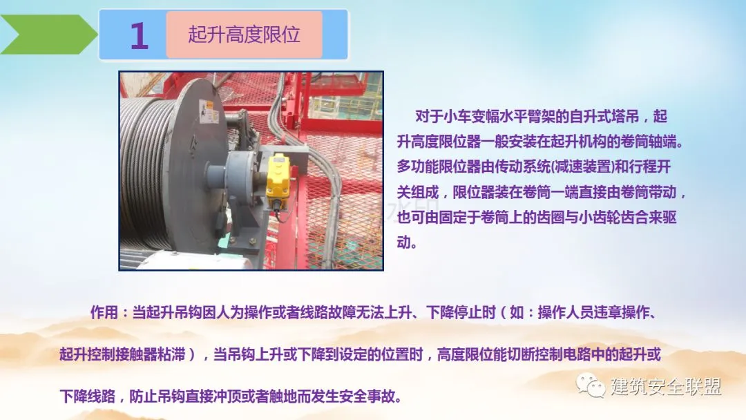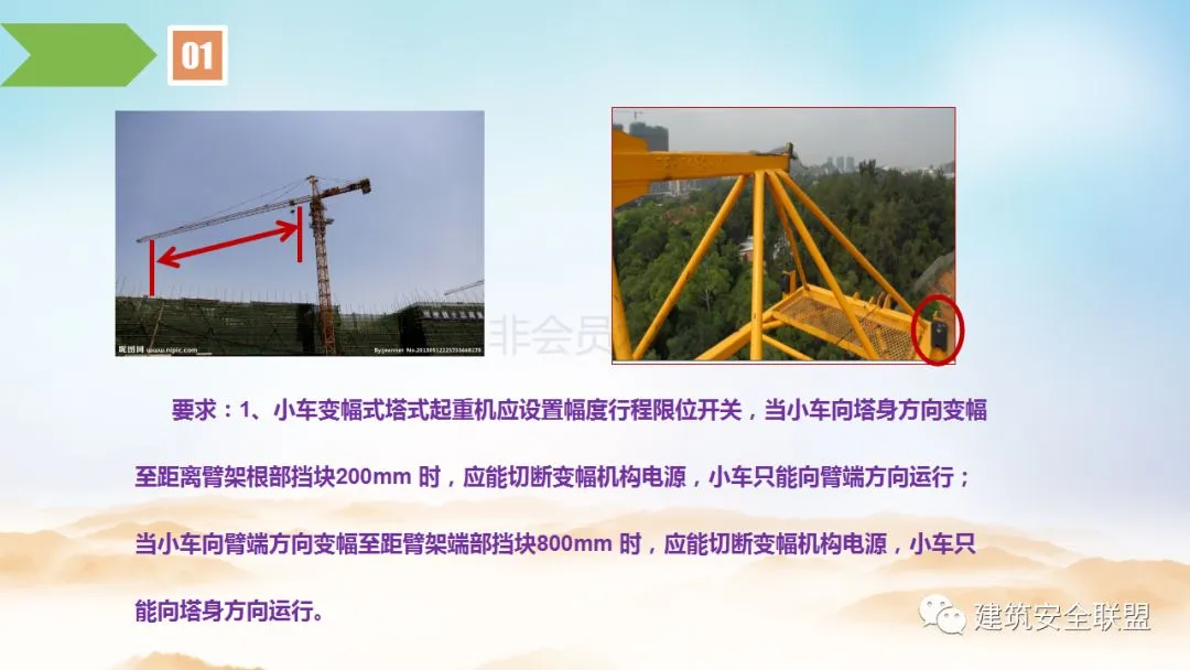 针对塔吊和施工升降机的安全装置,小编精心编制了一份《塔吊、施工升降机安全装置讲解》PPT,内容绝对全面,绝对值得学习、参考!看完后绝对让您对这些安全装置了然于心!