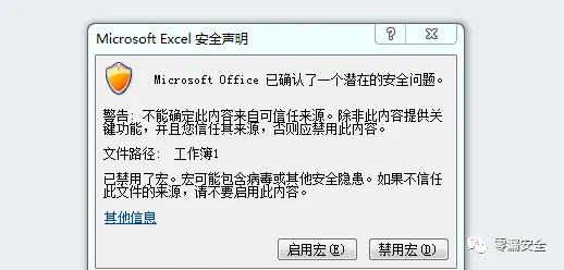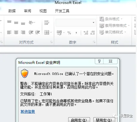 10.doc内嵌的Excel文档对象被插入了10个恶意宏对象,这样会反复弹框要求用户允许执行宏,稍不注意可能就会中招: