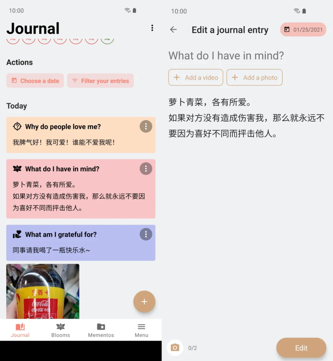 ▍Blooming:独特日记 App,用正确的姿势喝「心灵鸡汤」