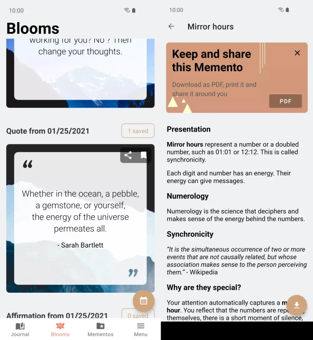 @Noah_Choi:心灵鸡汤这个词,放到现在来说,多少都包含了一些「矫情、做作、肉麻」等负面意味。不过心灵鸡汤没有错,就像读书一样,好的鸡汤也会发人深省、助人走出迷茫,错的是各类贩卖焦虑、贬低平凡的「毒鸡汤」。我们不如独立思考,用 Blooming 写一段属于自己的心灵鸡汤。Blooming 这款 App 的本质其实是一款日记工具,只不过它更侧重于用户的「心灵之旅」。Blooming 为用户提供了四种固定的记录话题,其中有 Gratitude(感恩)、Memory(回忆)、General(一般思考)、Review of the day(今日回顾)。其中今日回顾话题就是普通的日记功能,而其他三种话题都有其特定的意义,Blooming 会在编辑页面给出相应的引导。心怀感恩会改善你的心境,我们可以在 Gratitude 话题中记录同事们倾力合作时的感动,也可以是朋友送你一瓶可乐让你感受到愉悦。Memory 话题更像是文字版「纪念日」工具,如果今天你和 TA 在一起了、入职了心仪的公司、游戏中达成了顶级成就等等,都可以在这里记录下来。当你看到一只猫咪、听到一首老歌而产生了思考,不要犹豫,快去 General 里记录今天的思绪。而我最喜欢的功能,就是最下方的「No ideas, surprise me」,这很像 Google 搜索中的「试试手气」功能,它会随机给出一个话题,让我们多思考一点点,可能也就是这么一点点,能让我们体会到「我为什么止步不前,我又为什么能取得进步」。除了记录功能,Blooming 中还有两个实用功能「Blooms」和「Mementos」。前者会在每一天都提供 5 个不同的标签卡片,上面会推荐书籍、视频以及做事和思考方法,分享时还会生成一张非常文艺的图片。后者其实是介绍了几种关于自我完善、自我激励的内容,这些内容可不是毒鸡汤,他们都有相应的理论支撑,具有极高的可行性。如果你阅读英语有些困难,Blooming 提供了 PDF 文件下载,用户可以通过翻译工具阅读翻译后的 PDF 文件。如果你也想尝试一下这款能够帮助自己改善心境、持续自我完善的「心灵鸡汤」工具,可以前往 Google Play 免费下载 Blooming,付费购买高级版可以解锁日期更改、多个话题等高级功能。