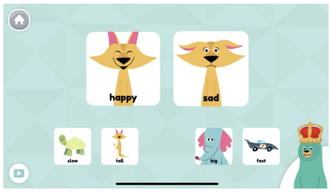 比如我们看其中的一个主题,首先从30秒的讲解一对简单形容词反义词开始,sad – happy 。