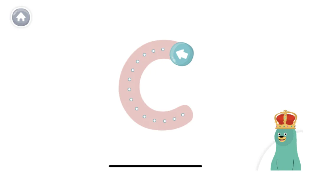比如我们选择学习字母C,那么第一个出现是一个小视频,讲解大小写字母Cc,以及它们在单词中的发音k。