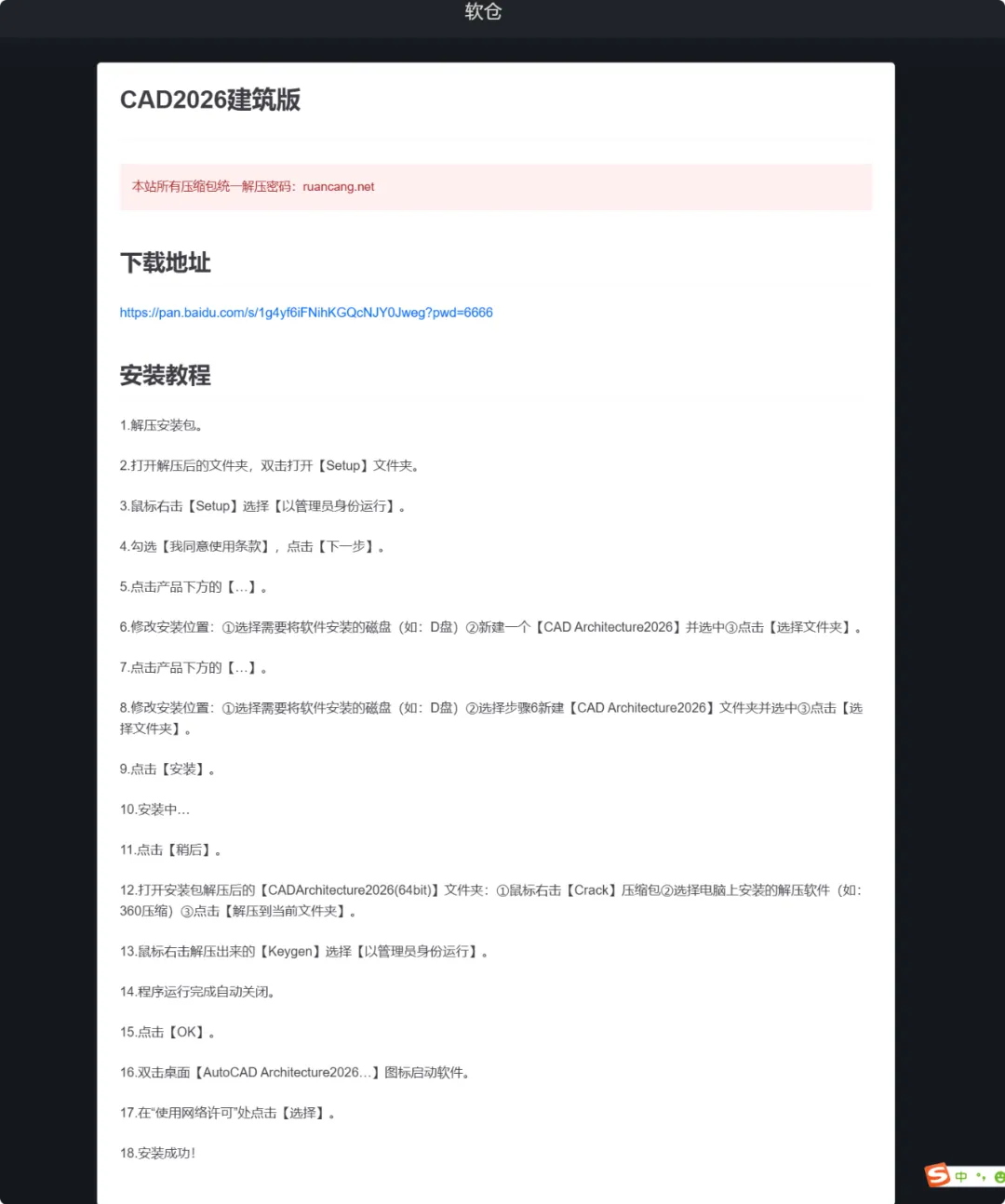 在网站上找到自己需要的版本设计软件,就会有网页跳转到新的页面,新的网页有下载地址和软件介绍安装教程。特别是安装软件教程都有详细的步骤和注意事项。